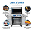LARGE REAR & SIDE BURNER: Larger rotisserie with included heavy duty rotisserie kit and increased infrared sear station size